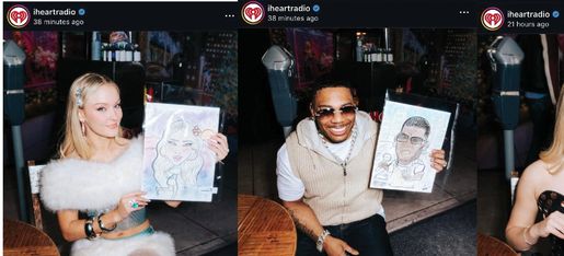 Artist snaps a picture of guest(s) and they can pick up their drawing at the end of the evening or throughout the party. This makes the ev